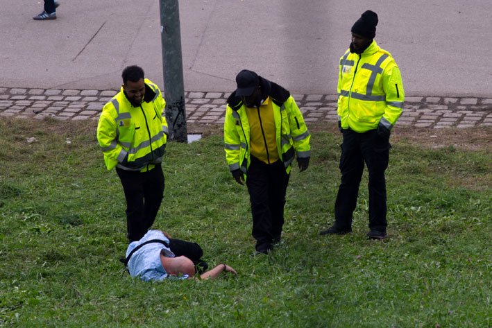 die Kunden stehen schwankend – stockbesoffen, krank.