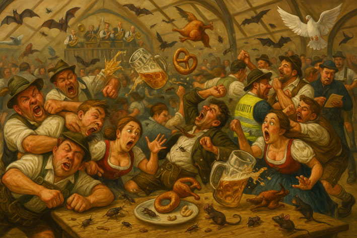Woasd, wenn Wiesn is flackd bei mir in der Lindwurmstraß oiwei a Haufa Glump auf da Straß. Iwaroi Glosscherm. Iweroi a Gschpeiberts, Dreeg und Lettn. Im Bus am Sitz. Wosd hischausd hod scho eppa higschbiem. Habi gsagd, Dinringer, habi gsagd, lass die KI doch a Foto macha von der Lindwurmstraß zur Wiesnzeit. Howama dengd boarisch werd die KI eh ned vaschteh, und dann hobi gsagd: